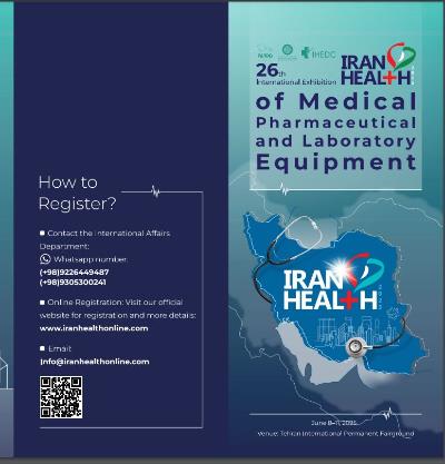 İRAN HEALTH 2025 Beynəlxalq Sərgisi Tibbi avadanlıqlar, Stamotologiya, Əczaçılıq və Labaratoriya sahəsində PARDİS Texnologiya Parkının nümayəndəsi - İranın qeyri dövlət sektoru olan Texnologiyalar üzrə Tibbi avadanlıqlar araşdırma mərkəzinin dəstəyi ilə 08-11 iyun 2025-ci il tarixdə Tehran şəhərində keçiriləcəkdir. Sərginin internet adresi: https://www.iranhealthonline.com Əlavə məlumat almaq və CV göndərmək üçün aşağıdakı vatsap nömrələri ilə əlaqə saxlamaq olar:  +989305300241 və +989226449487