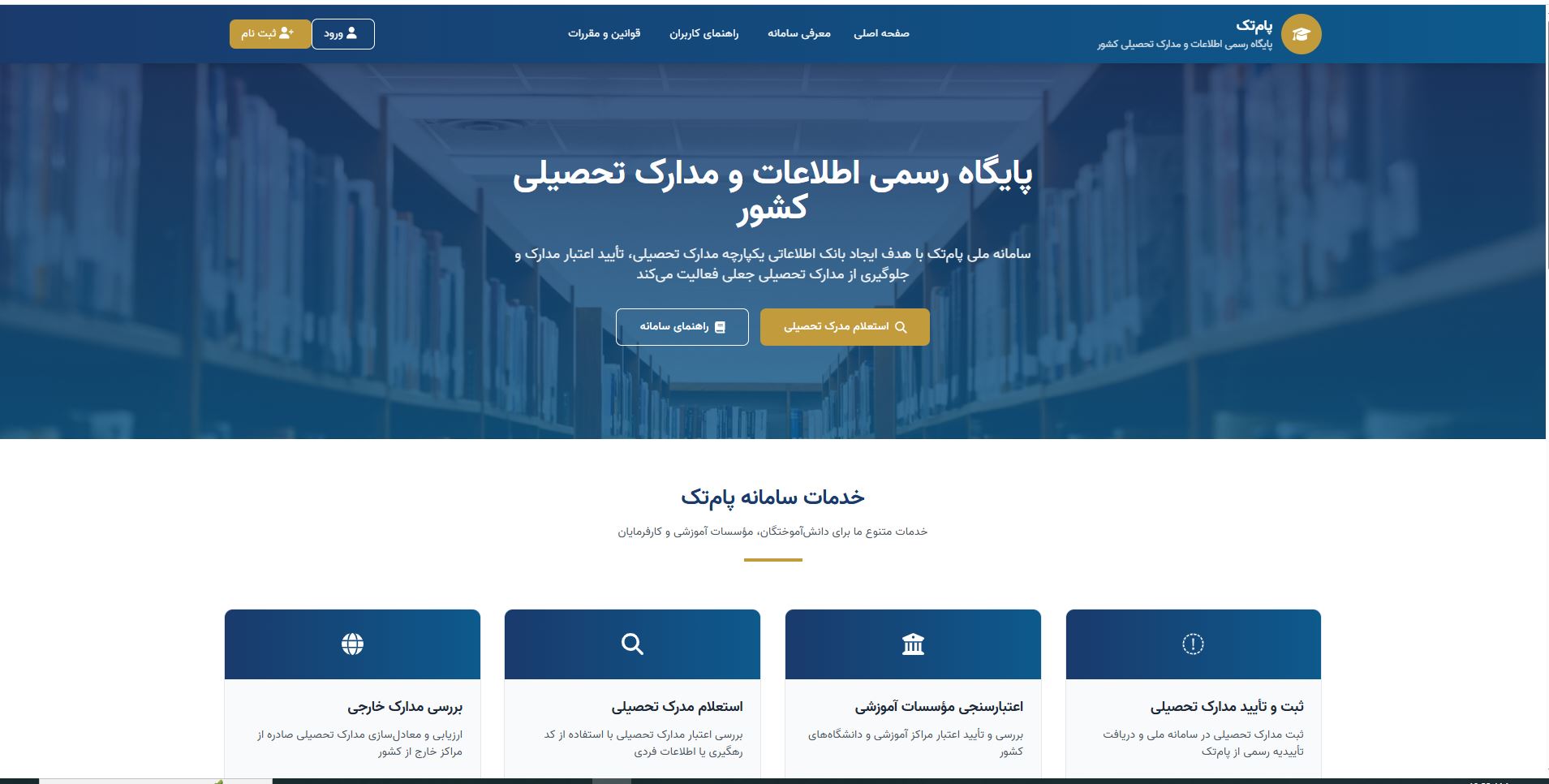 پامتک (Pamtak): پایگاه رسمی اطلاعات و مدارک تحصیلی کشور
